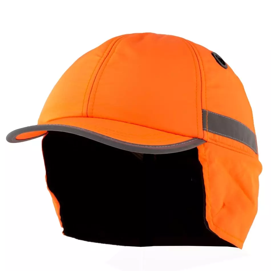 WINTER anti-shock cap, Fleece lining, Standard 5 cm visor, Orange, Reflective