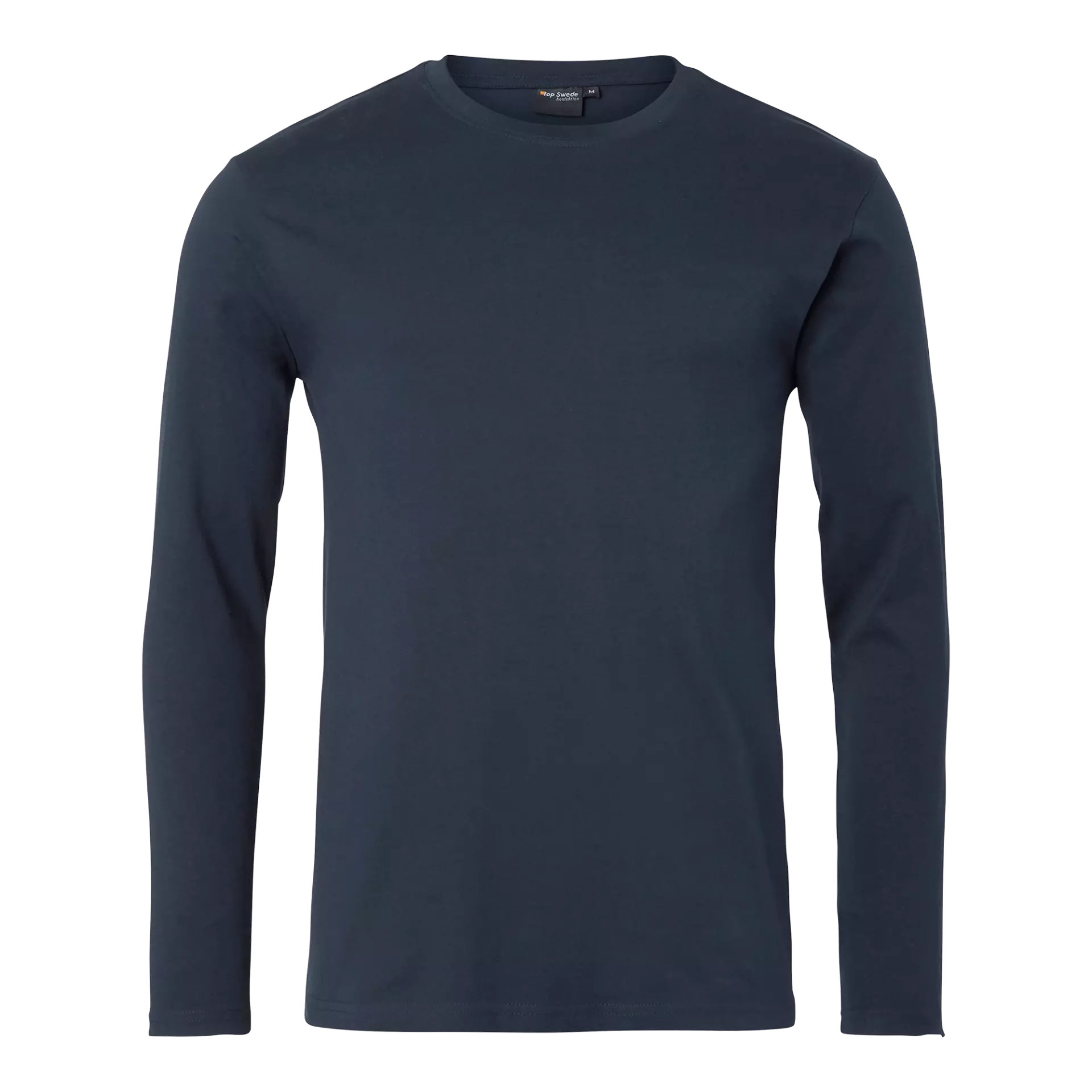 This classic long-sleeved cotton T-shirt features a double neckband with elastane reinforcement for enhanced durability and comfort. Made from 100% cotton with a 190 g/m² fabric weight, it provides softness and breathability suitable for both professional and casual wear. The design offers extra protection in colder conditions while maintaining shape retention through multiple wash cycles.