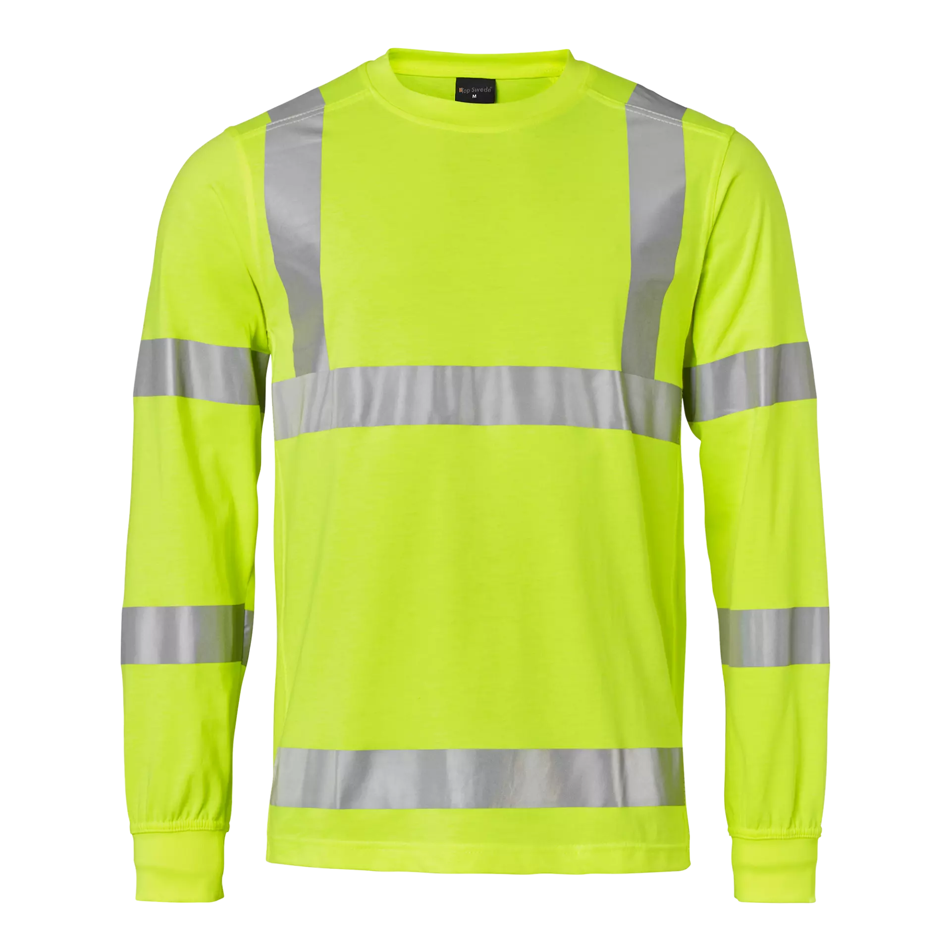 This long-sleeved high visibility T-shirt features a 50/50 cotton-polyester blend construction with stretch reflectors for enhanced visibility and comfort. Designed with a round neck and cuffs, it provides a comfortable fit suitable for extended wear in demanding work environments. The 190 g/m² fabric weight ensures durability while meeting EN ISO 20471 Class 3 standards for high visibility workwear.