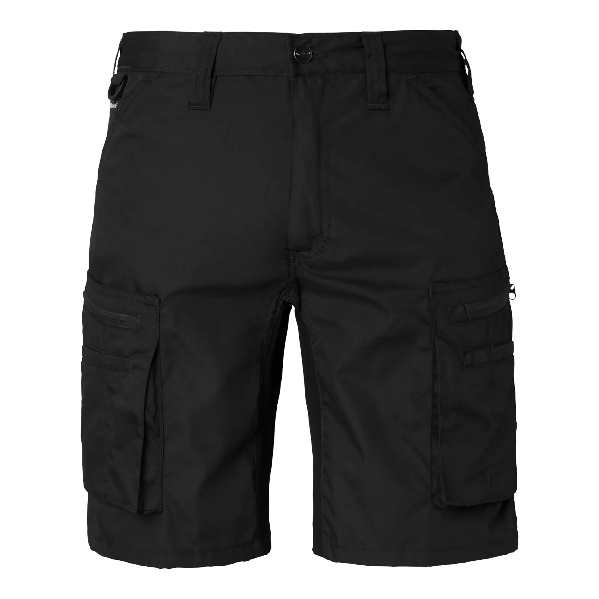 Professional work shorts featuring a modern fit with stretch fabric construction for enhanced mobility and comfort. Designed with multiple pocket configurations including zippered leg pockets and dedicated storage for tools and pens, these shorts incorporate stretch panels in key areas for maximum freedom of movement. The durable polyester-cotton blend with mechanical stretch makes them ideal for construction and industrial work in warm environments.