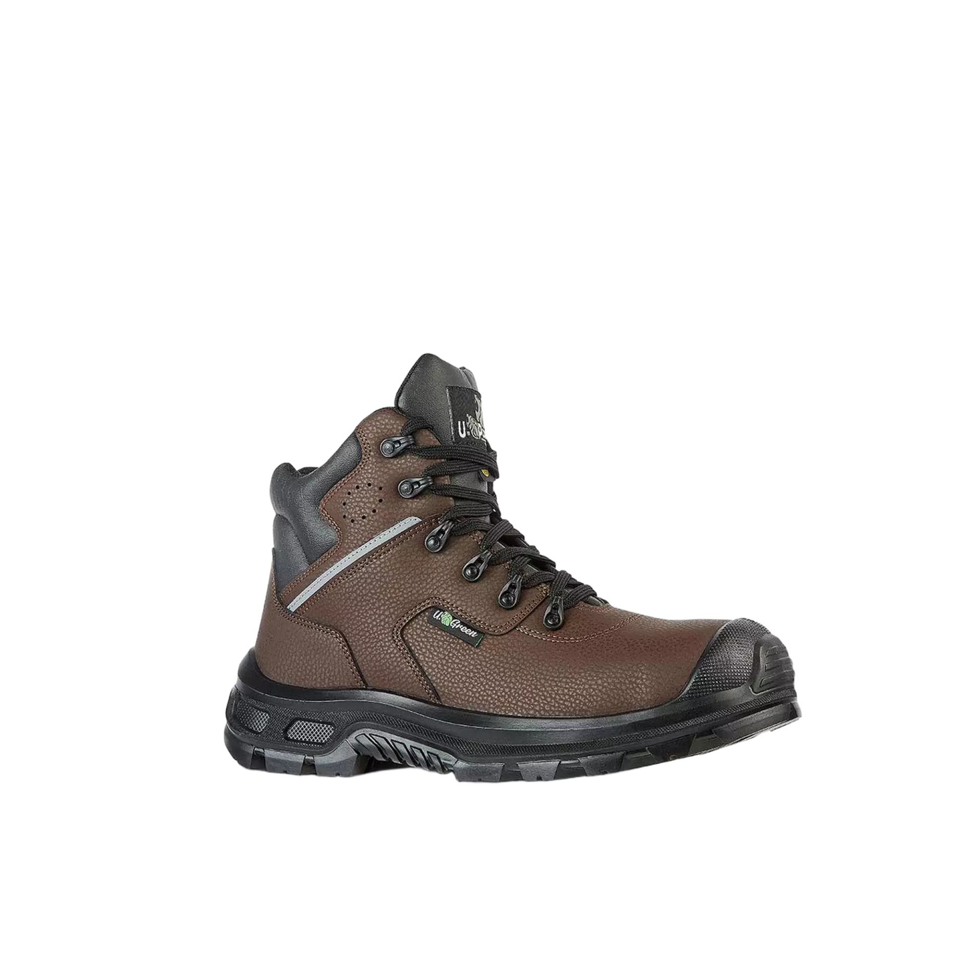 - High-top work boot with ultra-light AirToe composite toe cap and PU overcap