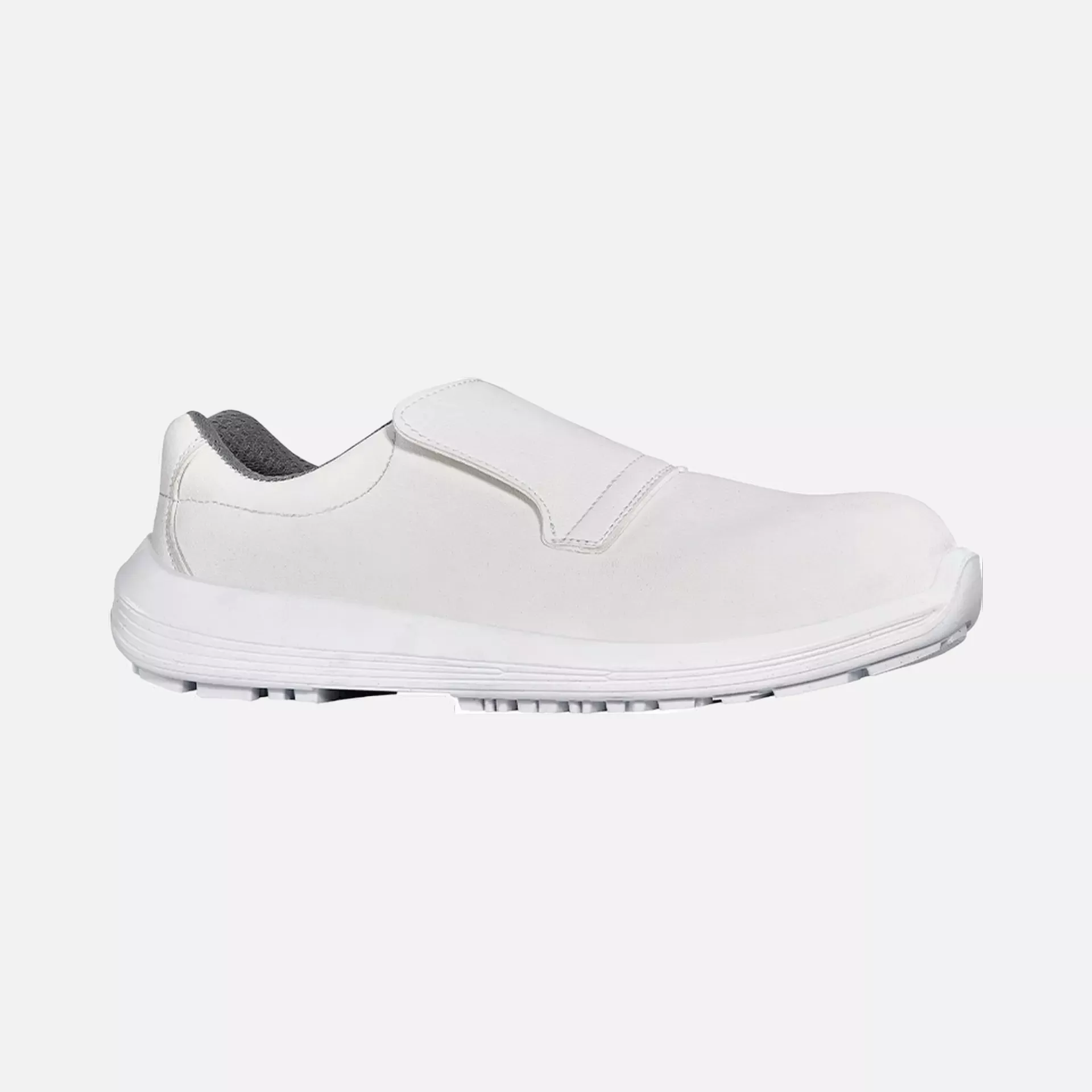 Provides protection from 200-joule impact with a protective toe cap, a closed heel, and antistatic properties. The heel absorbs energy and the upper part of the shoe is resistant to water penetration and absorption.