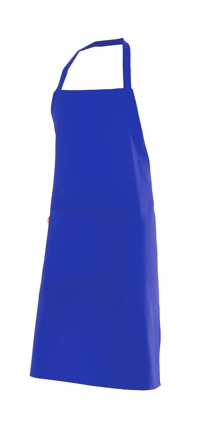 This adjustable apron features a single strap design that passes through the neck and sides for secure fitting. Made from 100% polyester plain weave fabric that offers easy ironing maintenance, it includes one front pocket for convenient storage.
