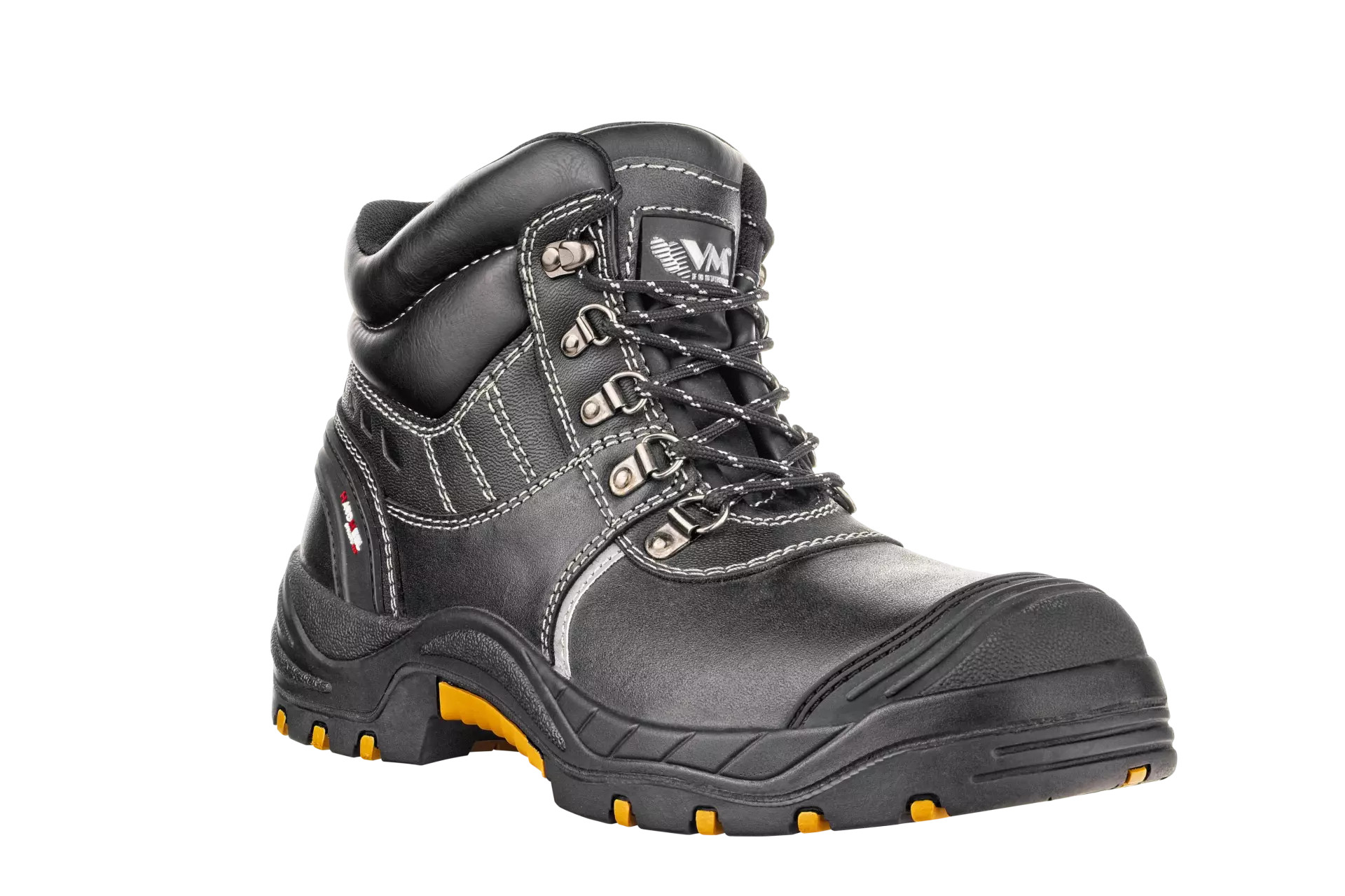 safety ankle shoes, with steel toe cap and steel midsole, hydrophobic, PU/Rubber sole - black