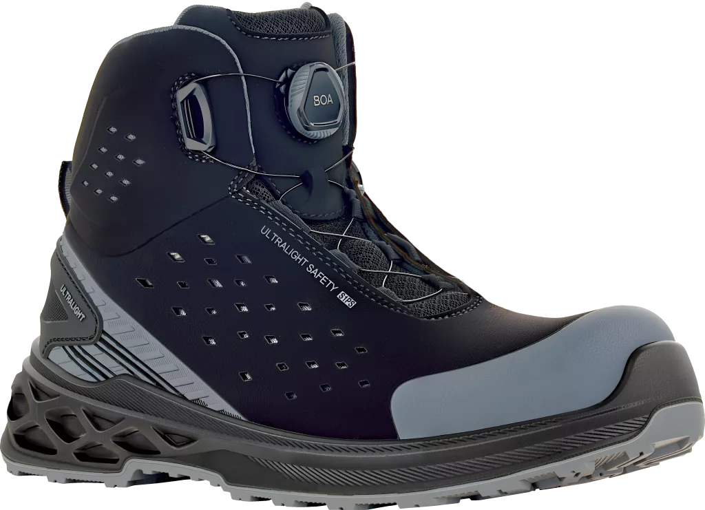 These safety ankle shoes feature a composite toe cap and Kevlar midsole to ensure reliable foot protection in the workplace. Equipped with the BOA® FIT SYSTEM, the footwear offers a precise, adjustable fit without traditional laces. The design incorporates a durable PU/PU sole and includes ESD properties for environments requiring electrostatic discharge control.