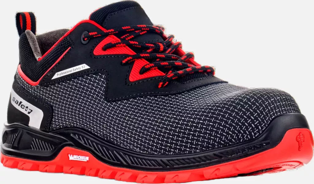 safety low shoes, with composite toe cap and kevlar midsole, polyamide fabric PUTEK, ESD, Non metallic, MICHELIN® PU/Rubber sole - black/red