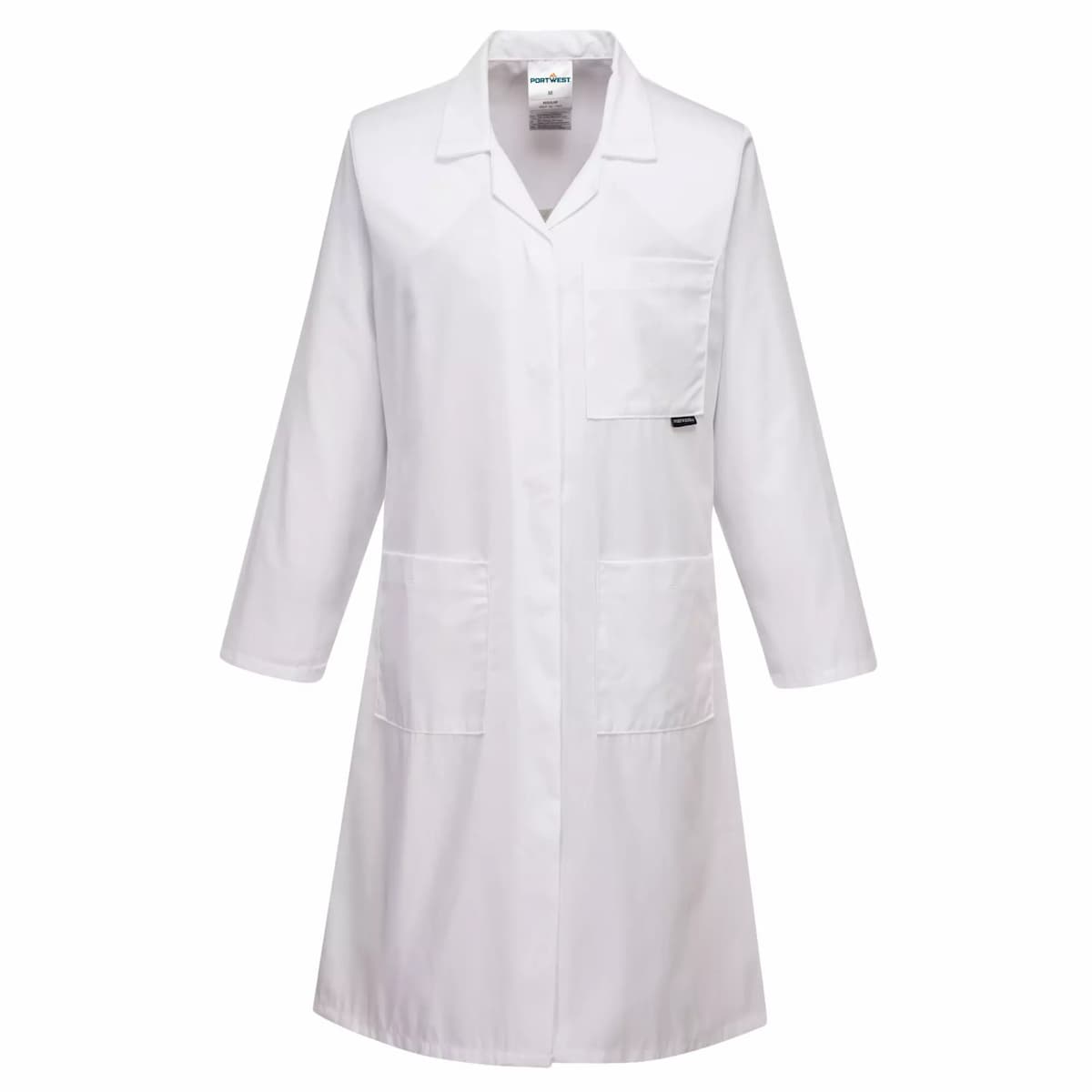 This women's coat combines durability and functionality for diverse work environments. Constructed from polycotton fabric, it features a concealed stud front closure and multiple storage options including chest and side pockets. The tailored design w...