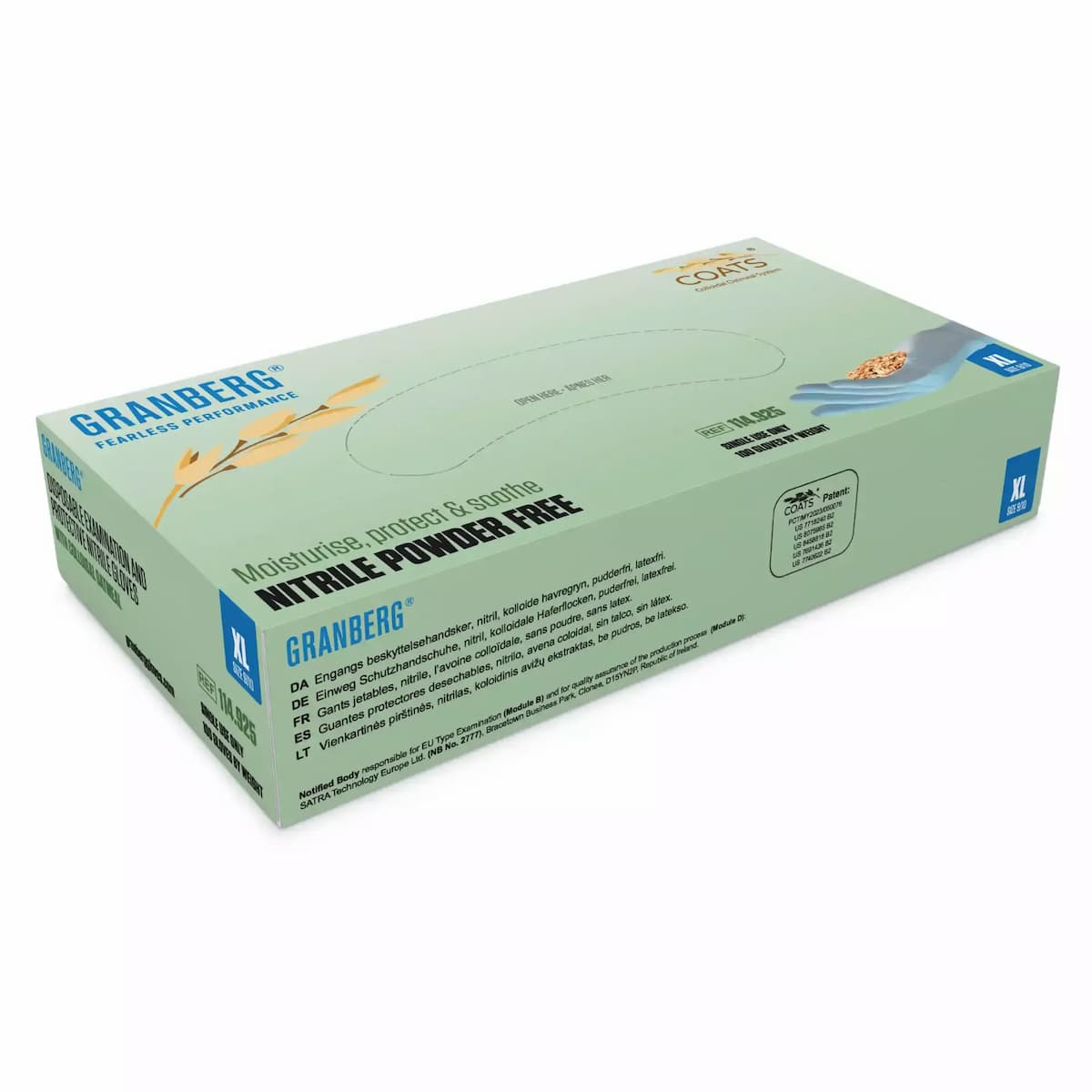The innovative COATS® (Colloidal Oatmeal System) nitrile gloves feature a specialized inner barrier designed to reduce skin damage and promote healing. The advanced inner protective layer contains colloidal oatmeal that moisturizes and rehydrates skin while relieving inflammation, irritation, and itching. These powder-free gloves combine superior protection with therapeutic benefits, making them ideal for extended wear in demanding environments.