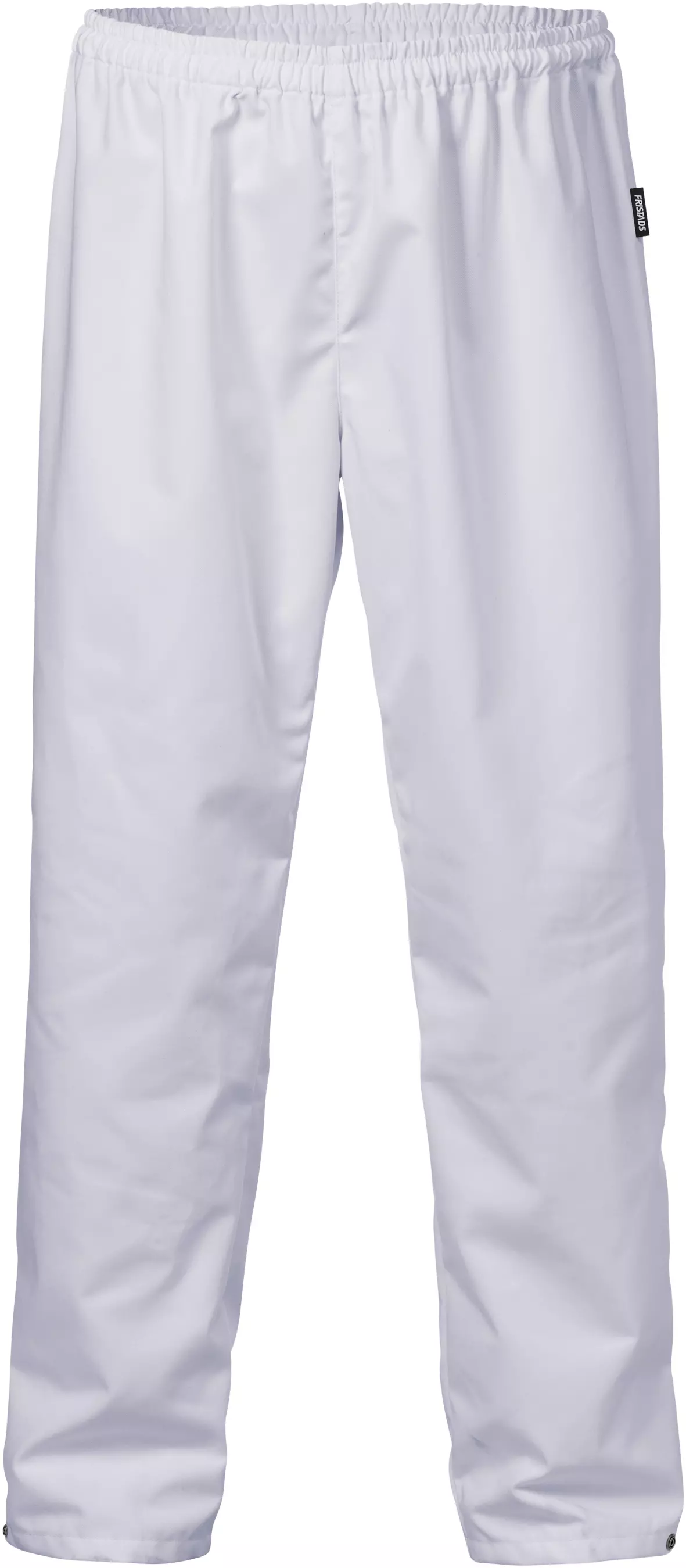 Food industry pants that meet the high-risk level requirements of DIN 10524 standard. Durable and lightweight 245 g/m² material is made from polyester-cotton blend and approved for industrial washing according to ISO 15797 standard. ÖKO-TEX® PRO certification ensures product safety and quality for food use.